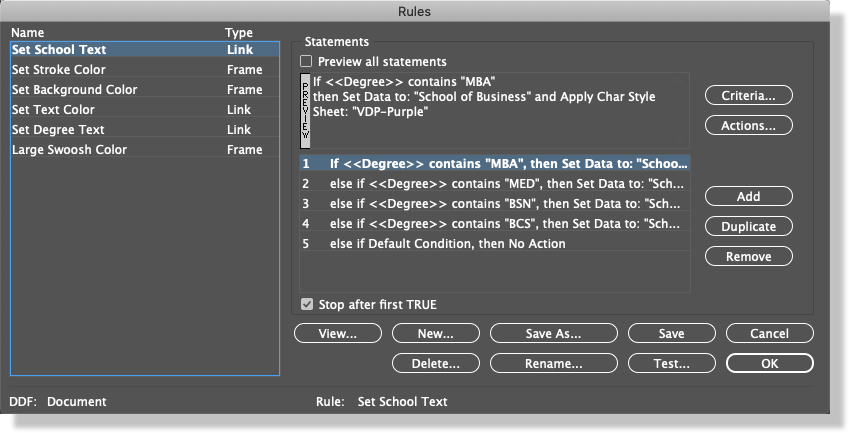 AccurioPro also includes a number of built-in features that you would expect to find only in much more expensive packages. These features include an advanced, menu-driven Rules Builder for handling conditional logic, an automatic Copy Fitting feature that will adjust text to fit an area, and Multi-up Imposition features that allow you to step out and preview your layouts without leaving InDesign, including full support for specialty modes such as Cut & Stack, Label Sort, or Duplo cutters.