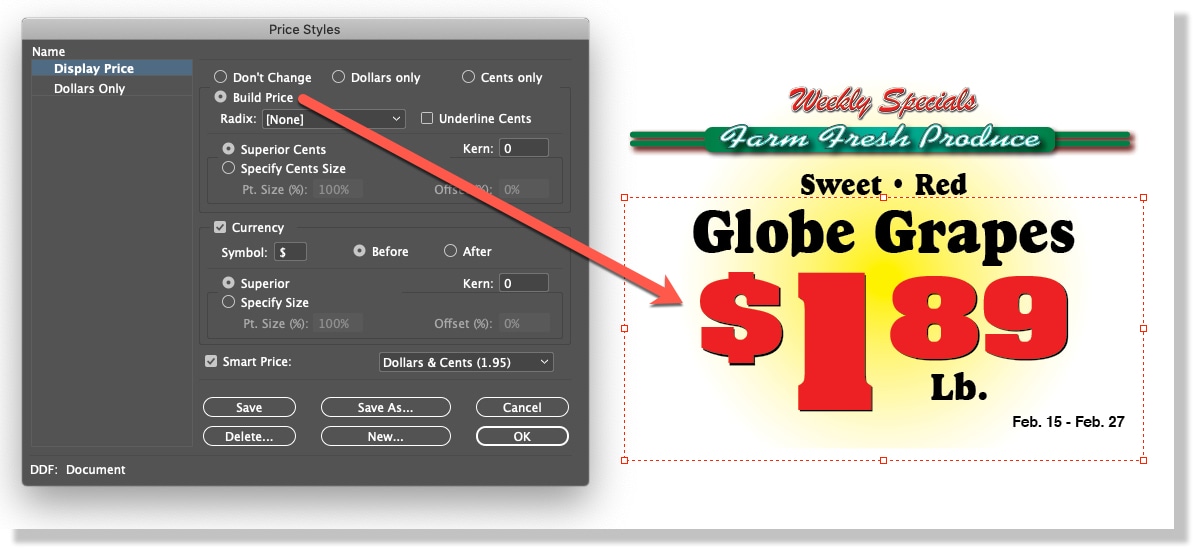 Create custom price styles in catalogs, store signage, and point-of-sale pieces